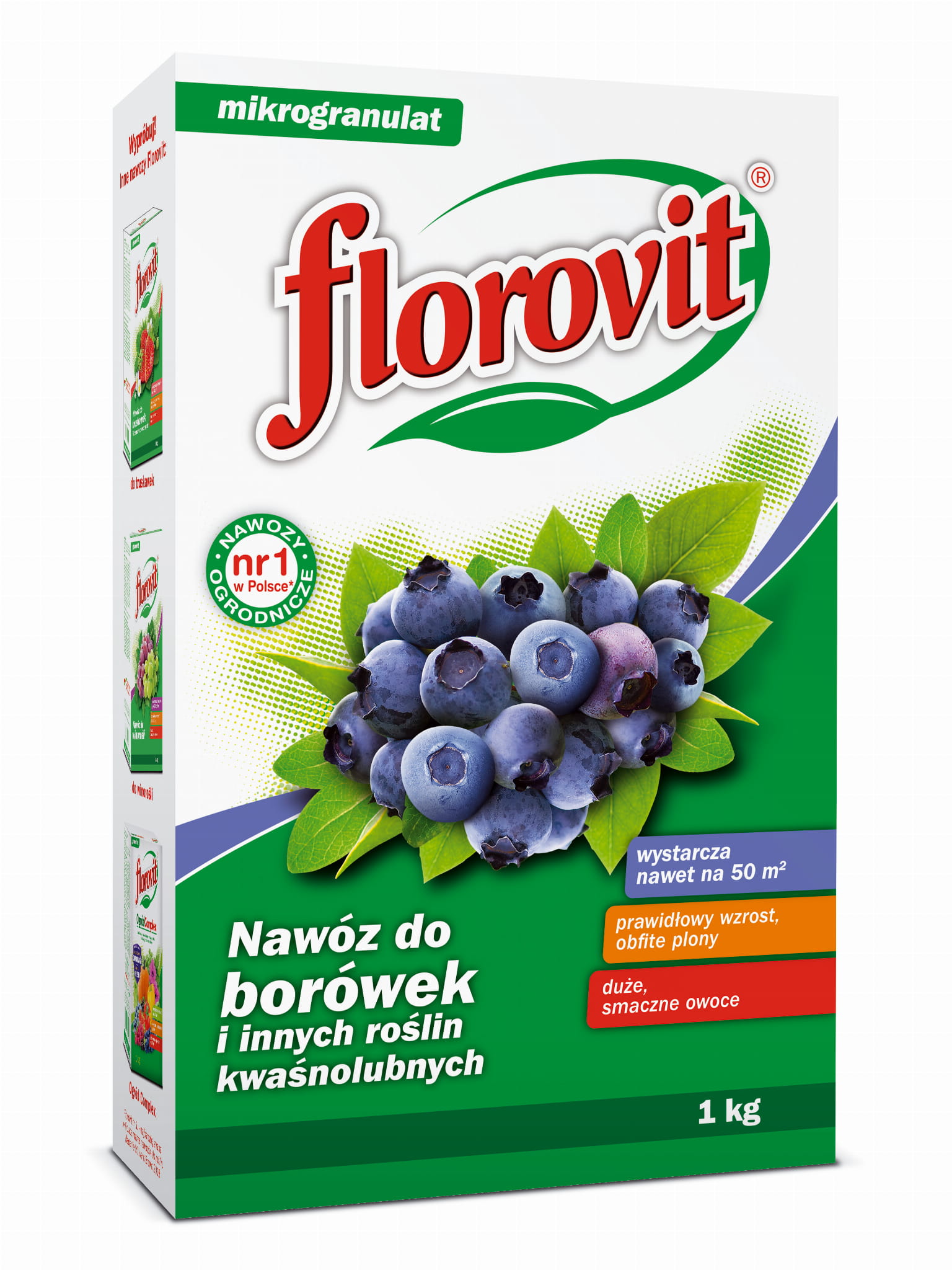 Wieloskładnikowy, mineralny nawóz doglebowy, przeznaczony do pogłównego dokarmiania borówek w pierwszym roku po posadzeniu i w dalszych latach uprawy. Ważną zaletą Florovitu do borówek jest zdolność zakwaszania gleby, co wyraźnie sprzyja wzrostowi i rozwojowi roślin wymagających stanowiska o niskim odczynie podłoża. Cechuje go również brak azotanów. Borówki sadzi się jesienią w podłoże o pH 3,8 - 4,8. Rośliny uprawiane w podłożu o zbyt wysokim odczynie charakteryzują się małymi przyrostami oraz przedwczesnym żółknięciem i opadaniem liści. Nawóz zapobiega chlorozie liści w okresie wegetacji roślin. Ponadto zastosowano w nim słabo przemieszczające się w glebie formy składników pokarmowych, co zabezpiecza je przed wymywaniem do wód gruntowych.